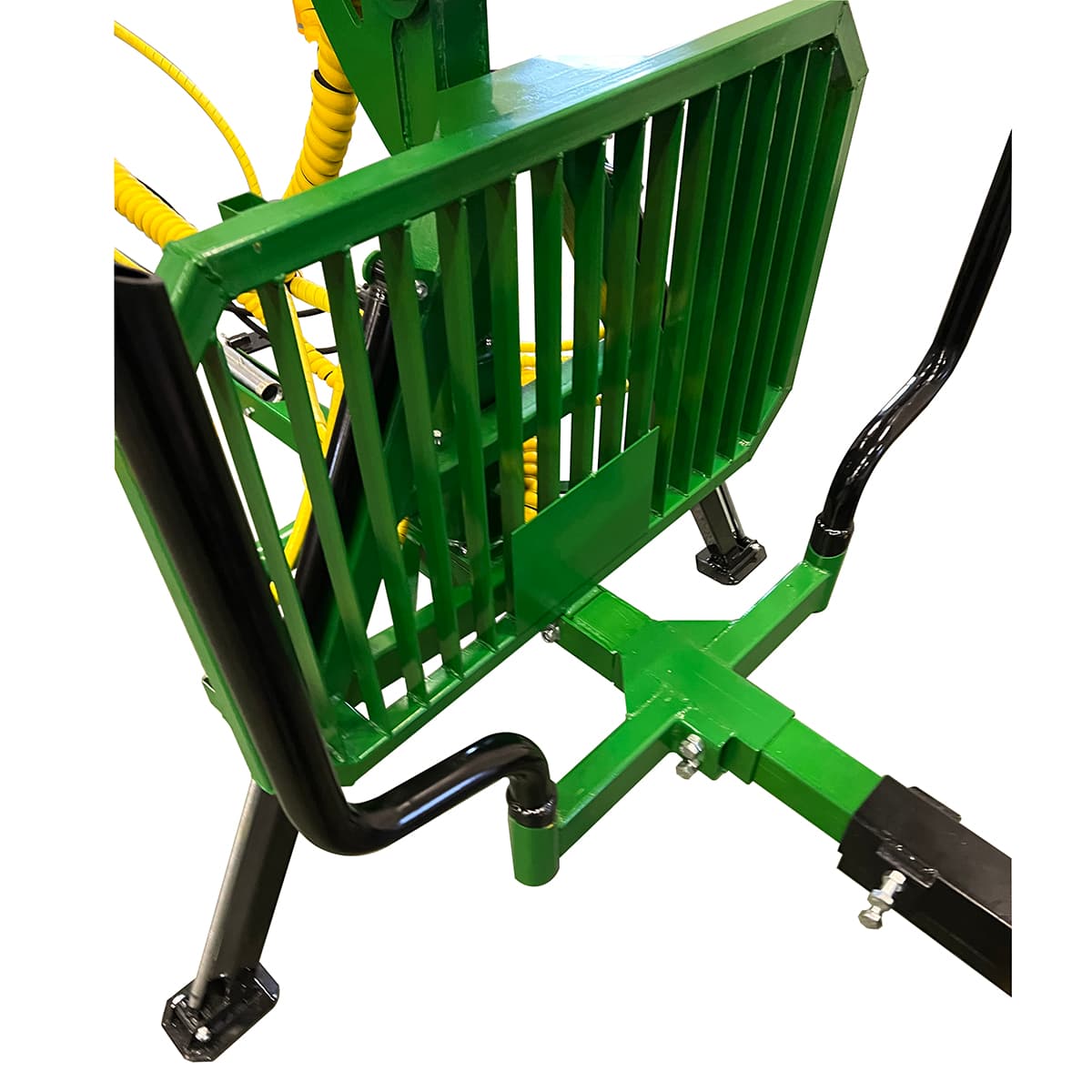 Podpory hydrauliczne gwarantują stabilność przyczepy przy załadunku i rozładunku. Cała hydraulika oraz okablowanie są zabudowane lub założone w bezpieczny sposób, co pozwala zminimalizować ryzyko uszkodzeń zewnętrznych. Przyczepa leśna jest dostarczana z żółtymi zabezpieczeniami żurawia.