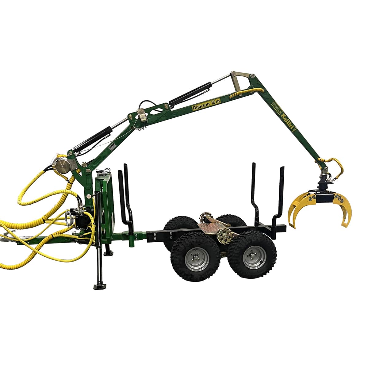 Przyczepa leśna ATV 2 tony z żurawiem 3,6 m – przegub wyciągarka